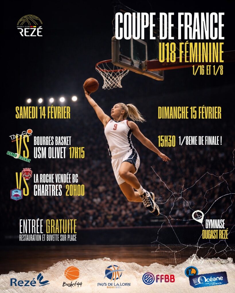 Nous sommes heureux de vous annoncer que le Basket Club Rezé et la ville de Rezé vont accueillir les 16ième et 8ième de finale de la prestigieuse Coupe de France