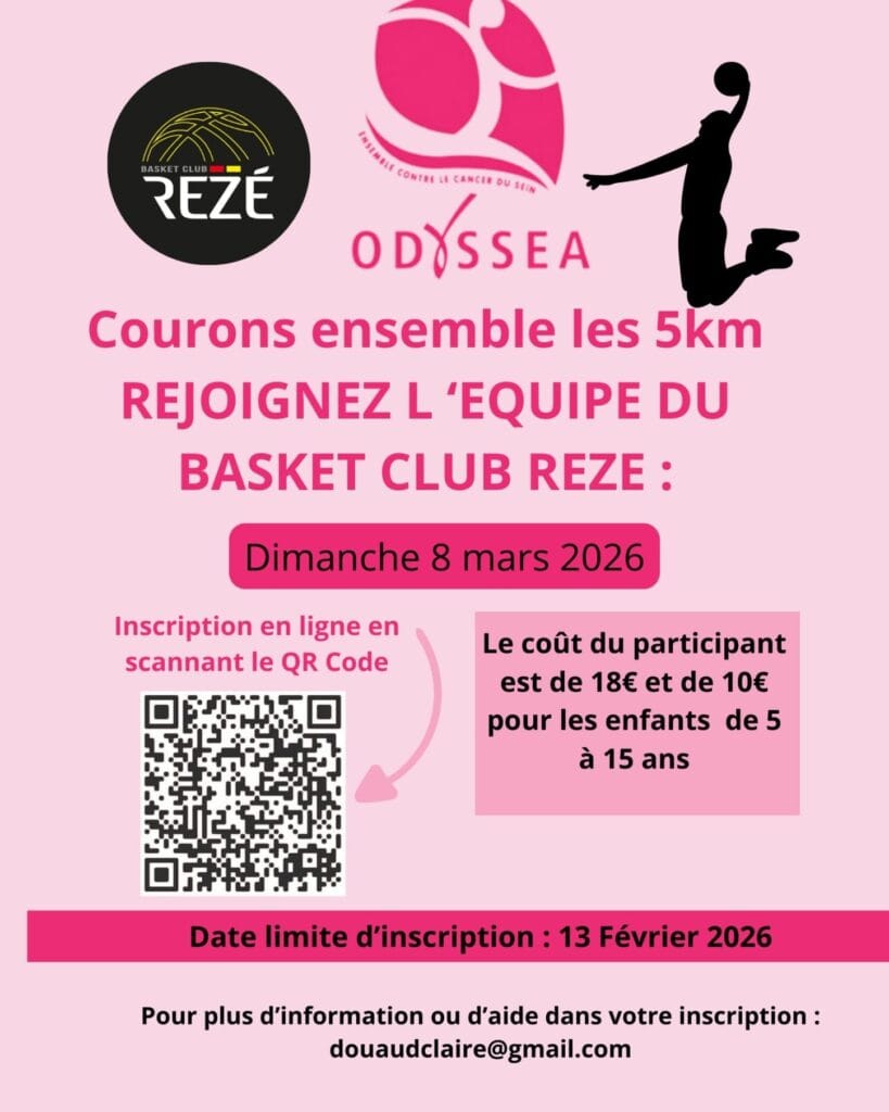 Après le succès de l’année dernière, on vous propose de relever de nouveau le défi de courir ensemble! Rejoignez l’équipe du BCRezé et courons pour les *5Kms* ( marche ou couse)