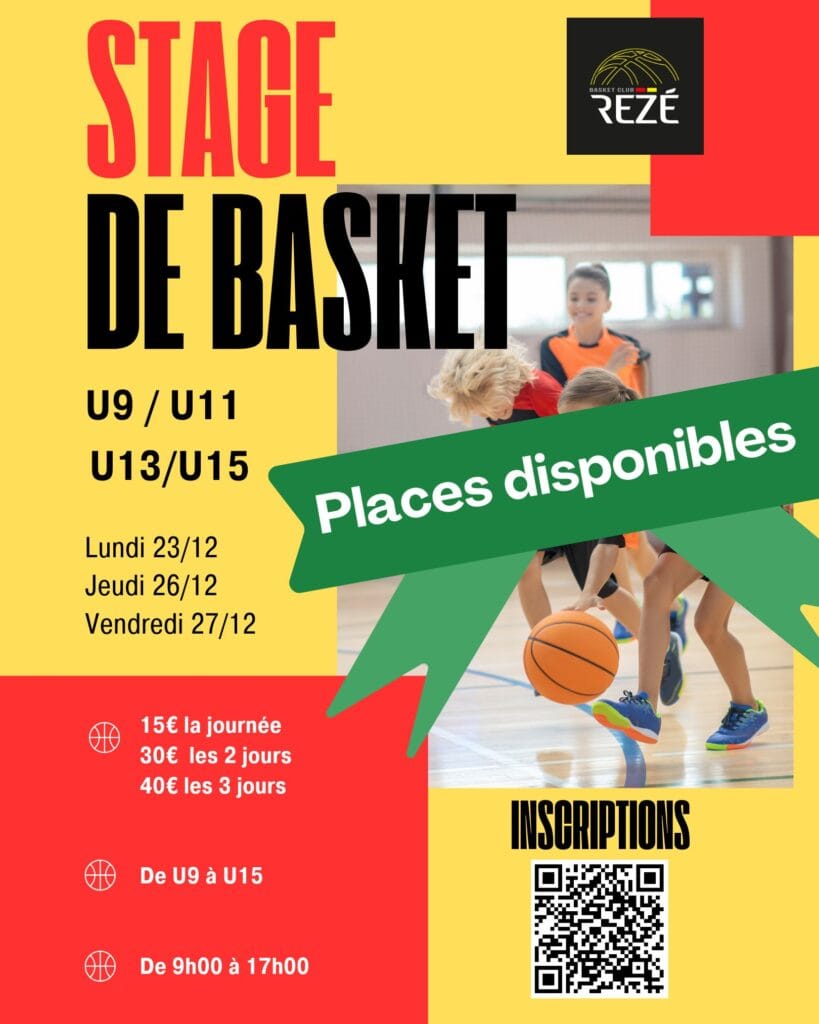 Inscriptions sur https://www.payasso.fr/basket…/stage-premiere-semaine-noel ou en flashant le QR Code.